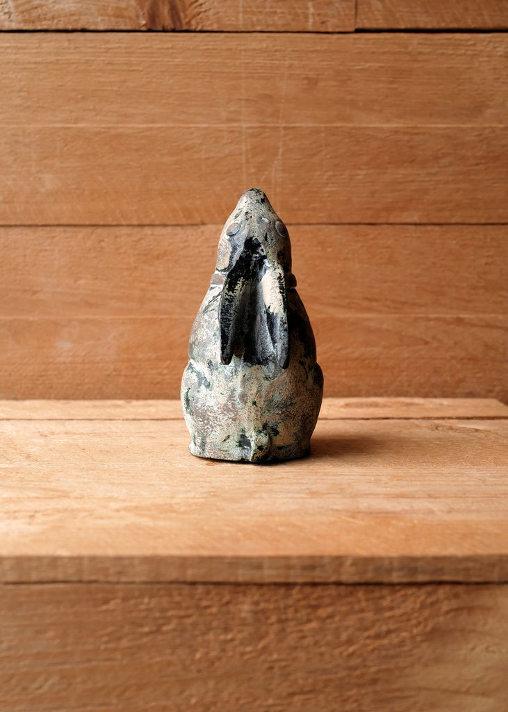 One of our favorite vintage finds. The Japanese Moon Gazing Rabbit is a vintage piece crafted in Japan. In Japanese folklore, a rabbit gazing at the moon, also known as the "moon rabbit" or "Tsuki no Usagi," is a symbol of selflessness, compassion, and good fortune. The sculpture features a beautiful patina and is and is available with and without an original wooden stand.
