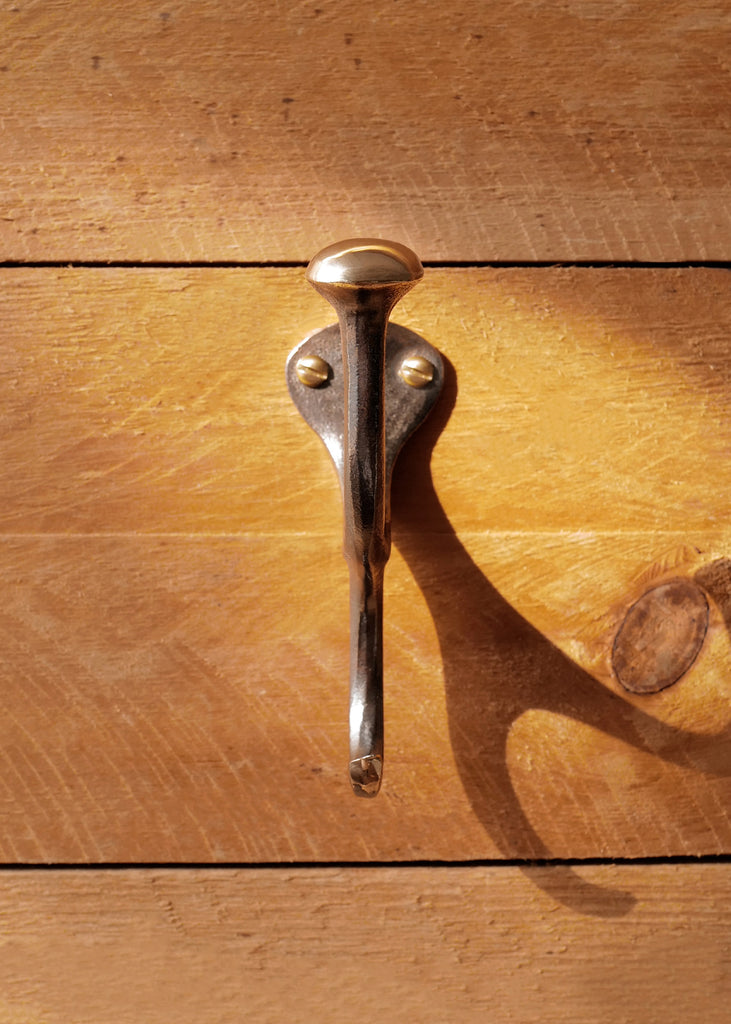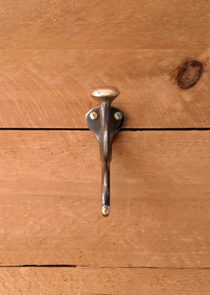 Since the 1970s, Richard Fisher has been casting bronze in his Mid-Coast Maine studio, creating functional objects that double as sculpture. The Bronze Hook is cast in a single piece and designed for both indoor and outdoor use. The traditional hook works well for towels and coats and can be installed in multiples for entryways, bedrooms, or bathrooms.