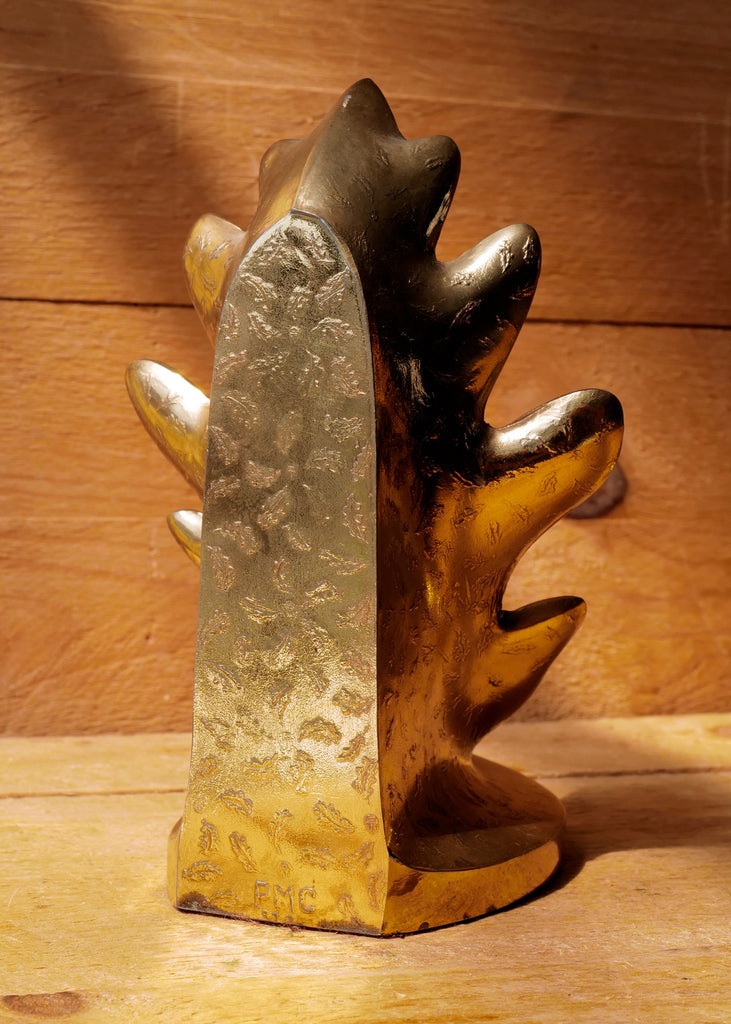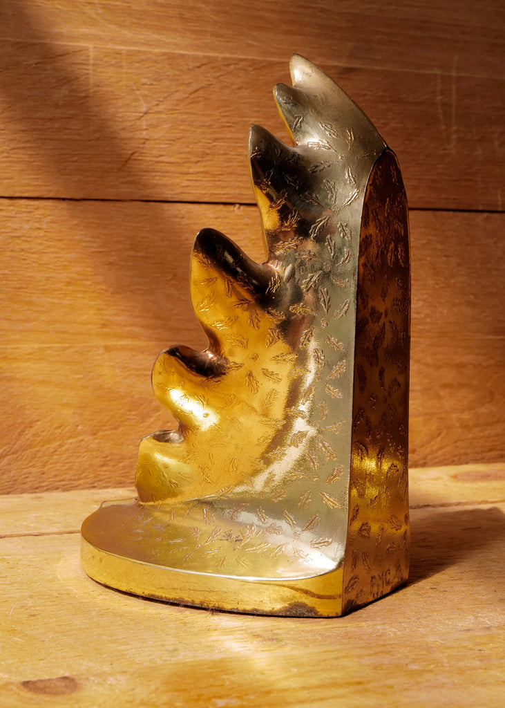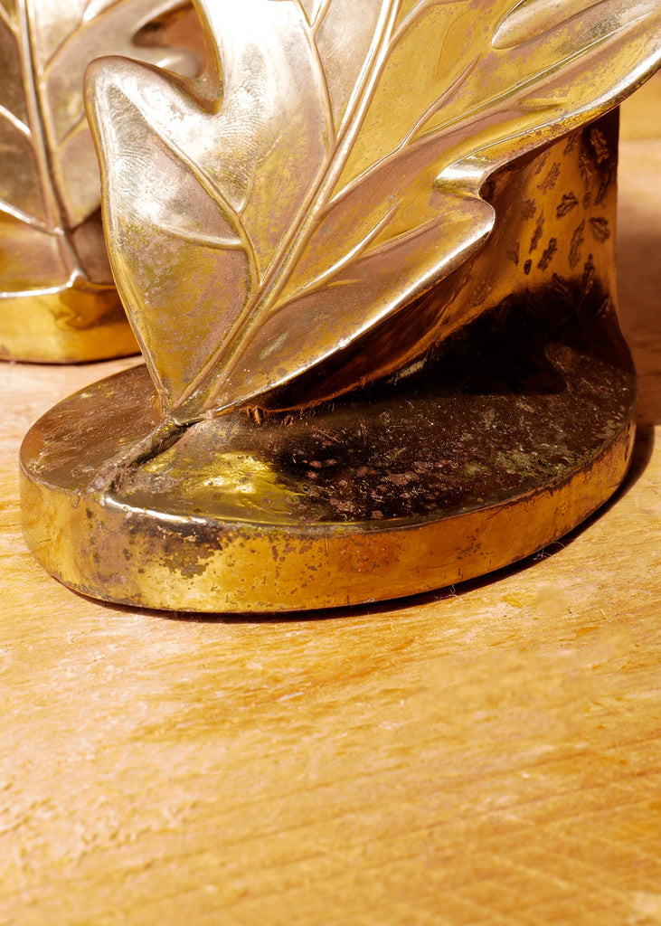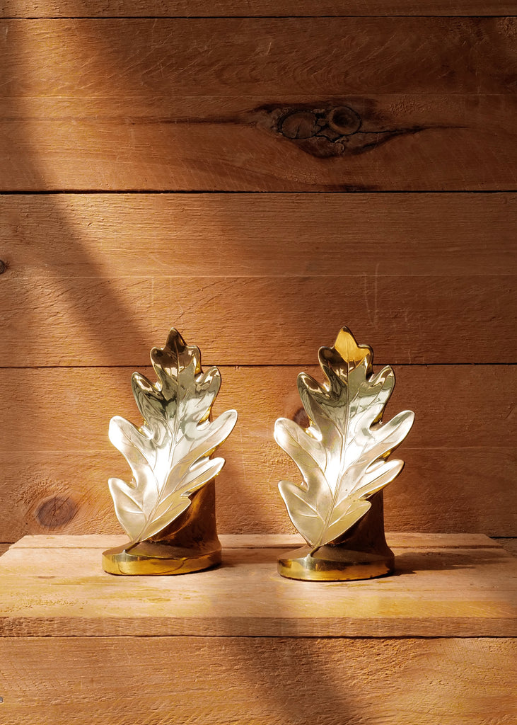 Note: The Oak Leaf Bookends are vintage and each set will have a unique patina and finish. There may be slight variations between each individual bookend within a set.