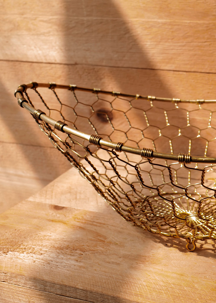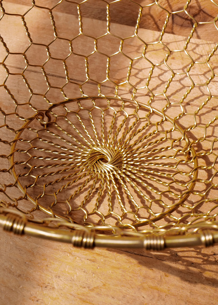 Designed for everyday use, it is suitable for holding vegetables, herbs, garlic, or other items while allowing airflow for drying. Each basket is individually produced by Kanaamitsuji, a second-generation workshop dedicated to evolving traditional wire mesh techniques for contemporary use.