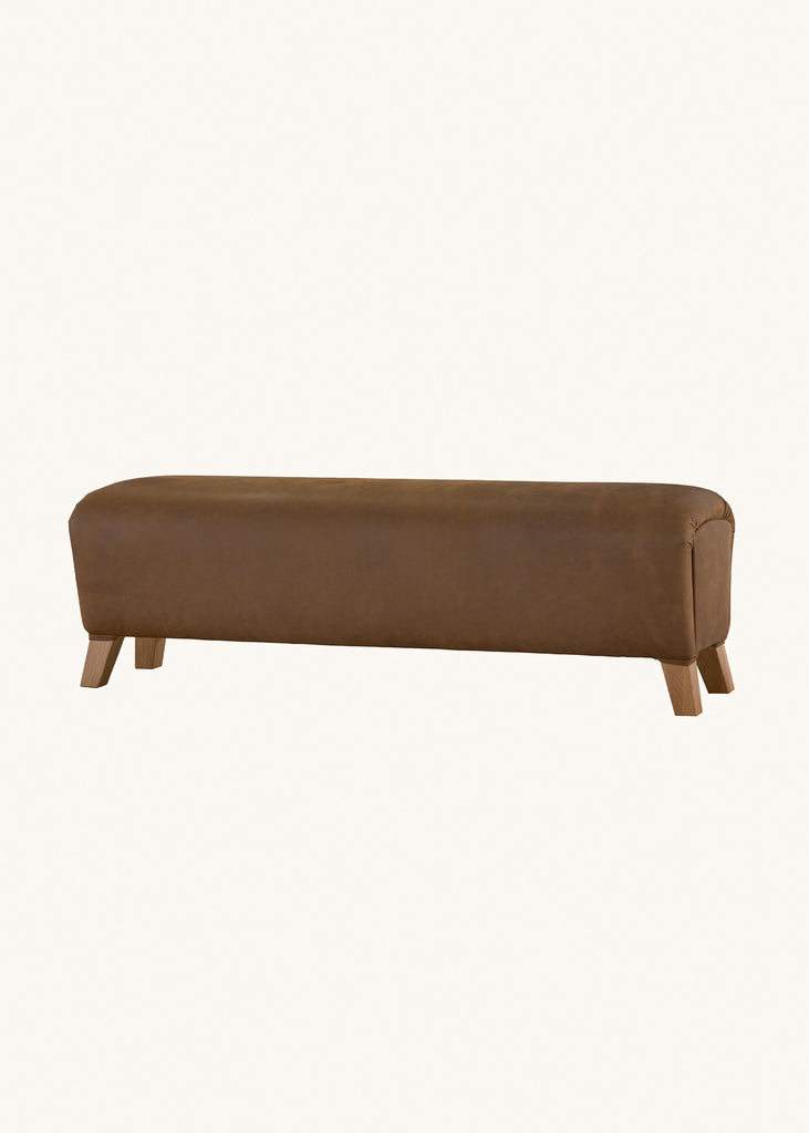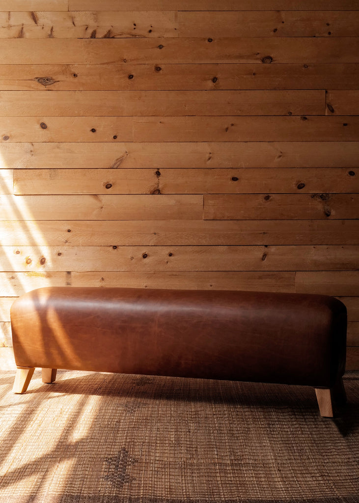 Inspired by vintage leather pommel horses once used in 1930s gymnastics training, the Ithaca Bench is a timeless piece that balances durability with comfort. Its solid wood legs provide lasting strength, while the generously cushioned seat offers a plush sit that is both firm and supportive. Designed with intention, it feels equally at home in an entryway, dining room, or bedroom.