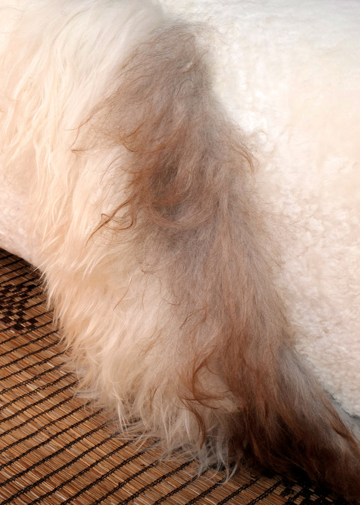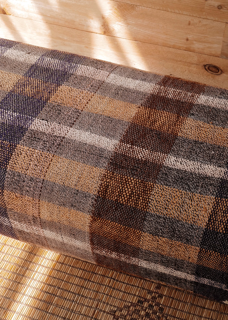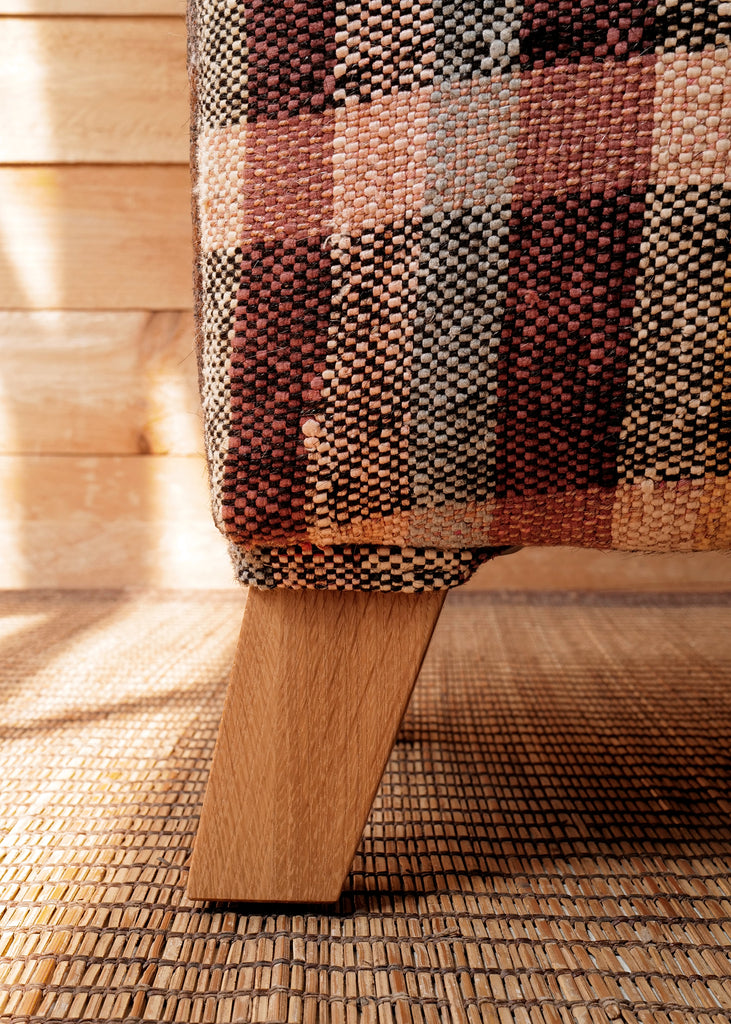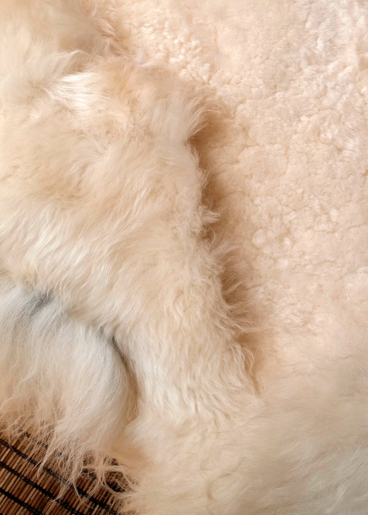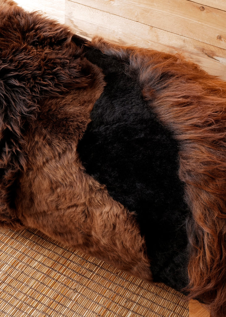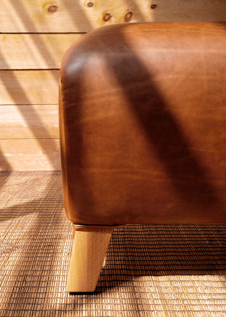 What makes this version of the Ithaca Bench truly unique is the Slow Roads upholstery program. We specialize in creating one-of-a-kind combinations using rare vintage fabrics, premium leather, hand-selected textiles, and our Saja Sheepskin design. Saja is offered in three naturally undyed melange colorways, (Warm White, Grey, and Brown) each made from a blend of unbleached furs with their own natural variations in tone, texture, and length. The result is a surface rich in depth and character, ranging from warm to cool and light to dark.