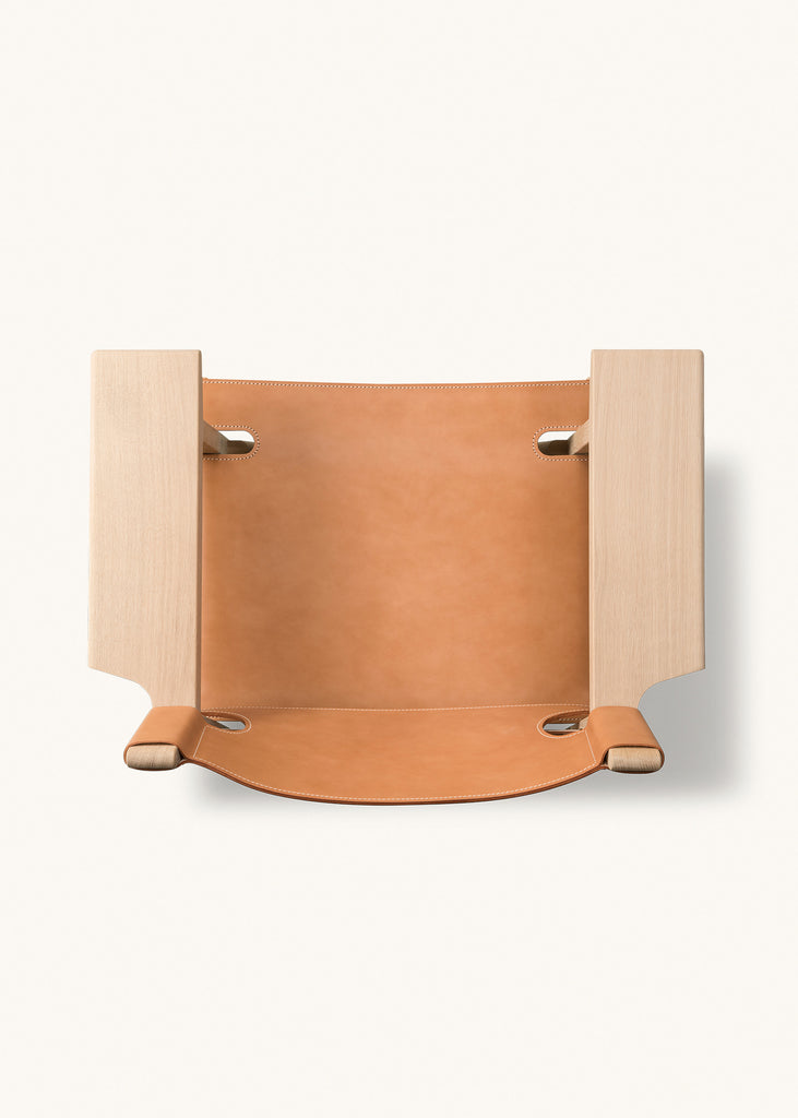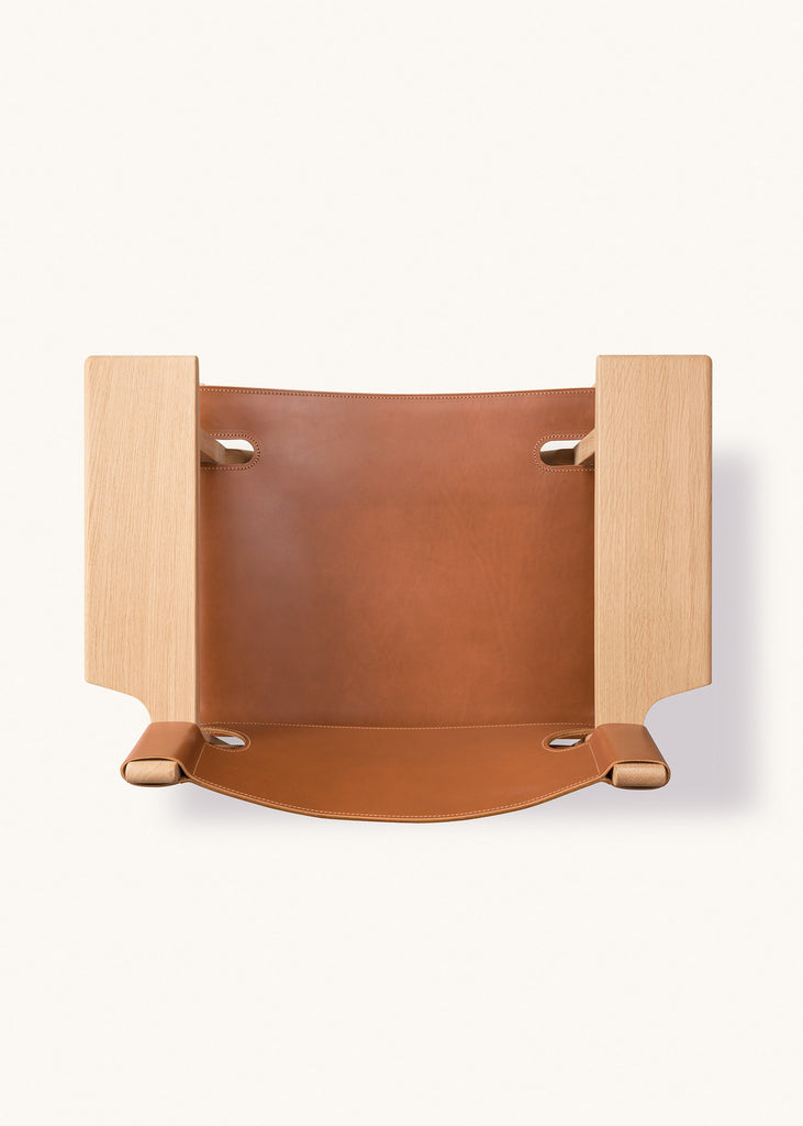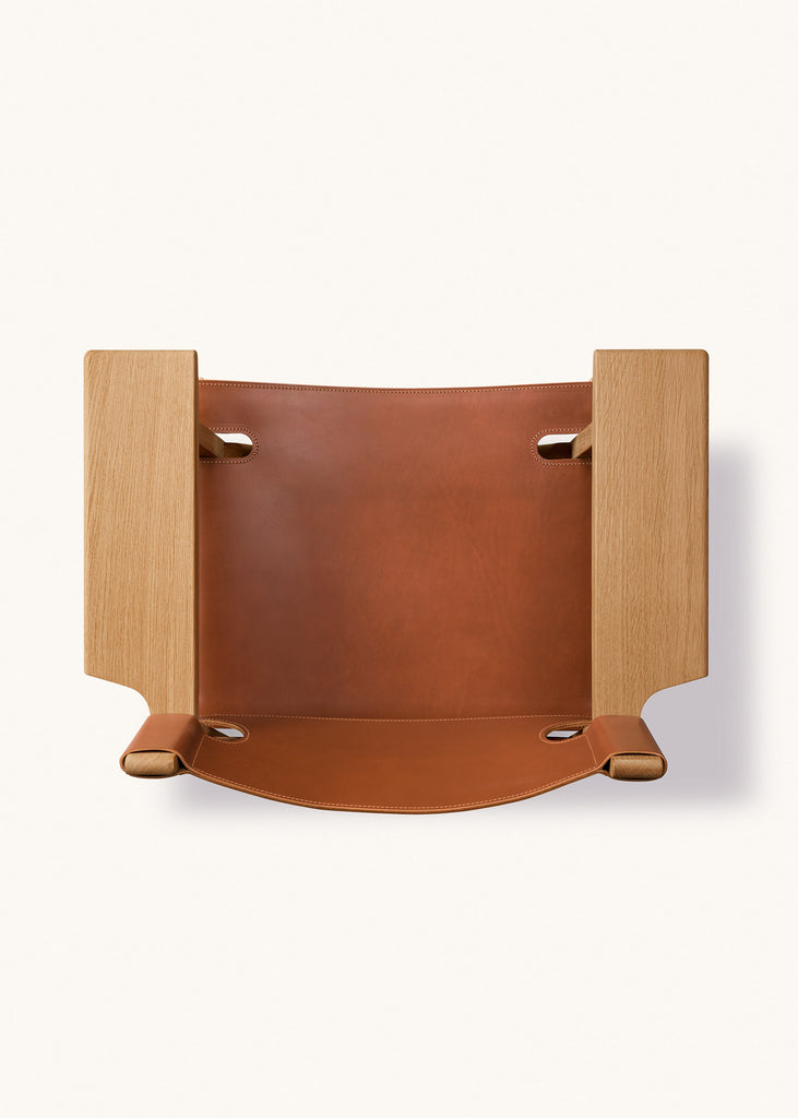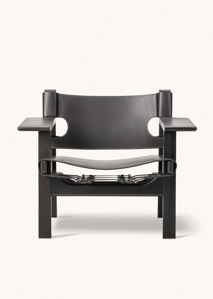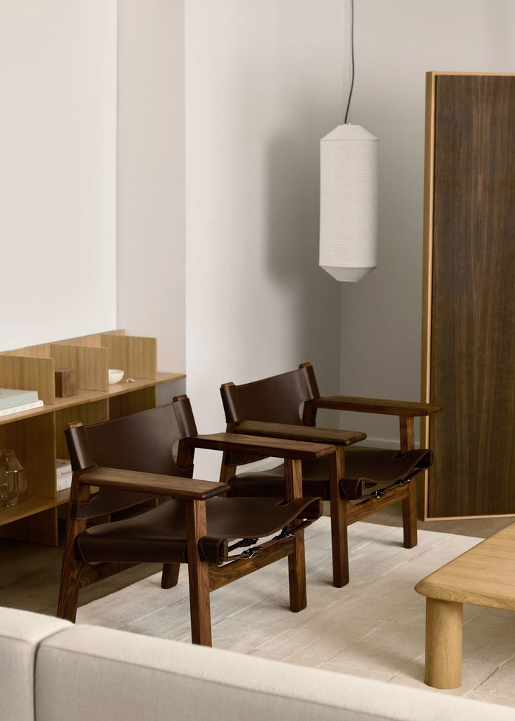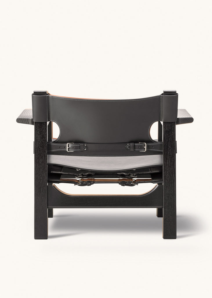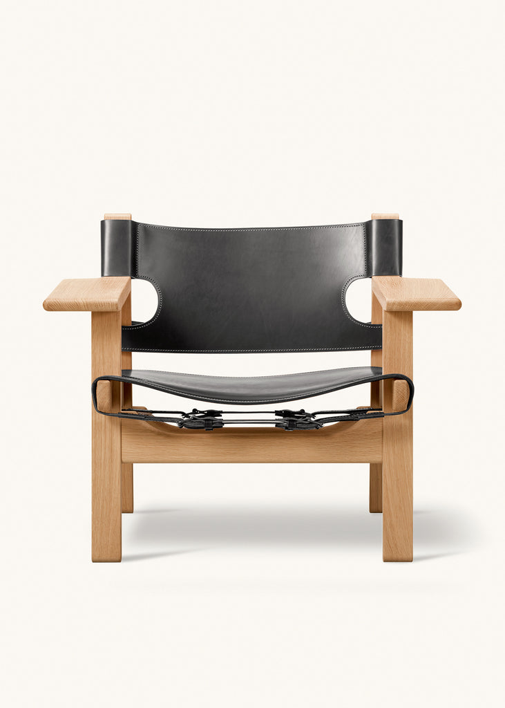 Designed in Denmark by Børge Mogensen in 1958, the Spanish Chair draws inspiration from traditional Spanish furniture-making techniques that used sturdy leather as an integral part of construction. This Spanish approach supported Mogensen's belief that good furniture should be enjoyed now and for generations to come. Available in solid oak or walnut, the chair's high-quality saddle leather develops a patina over time and the adjustable straps can be tightened as the leather naturally expands.