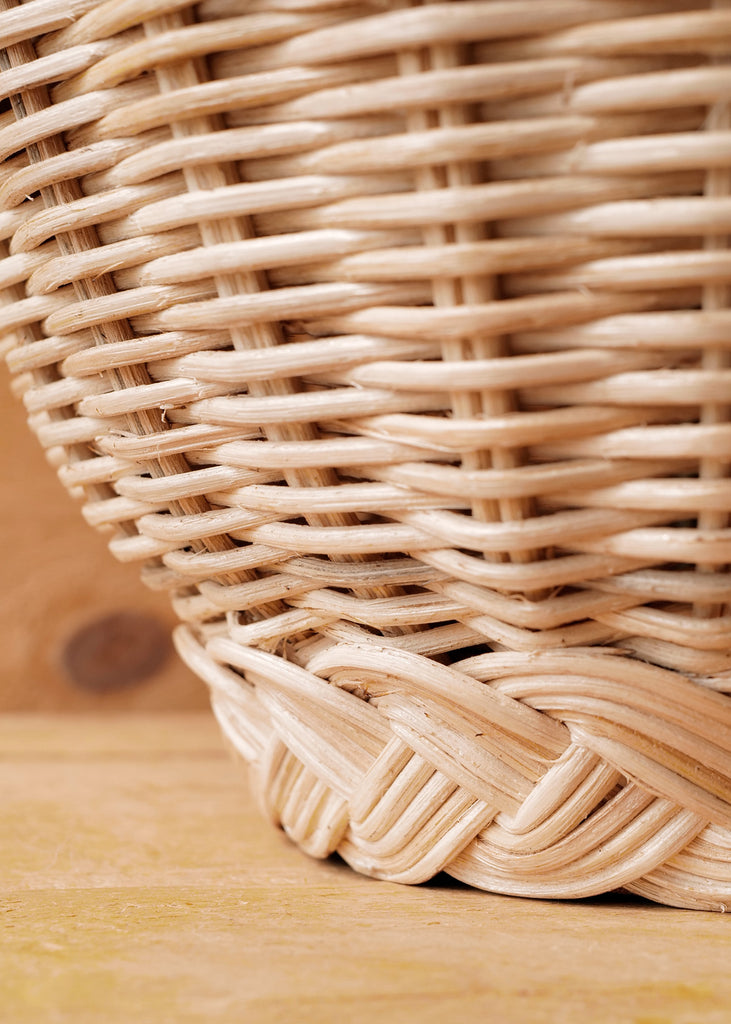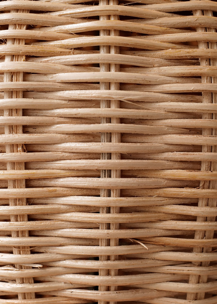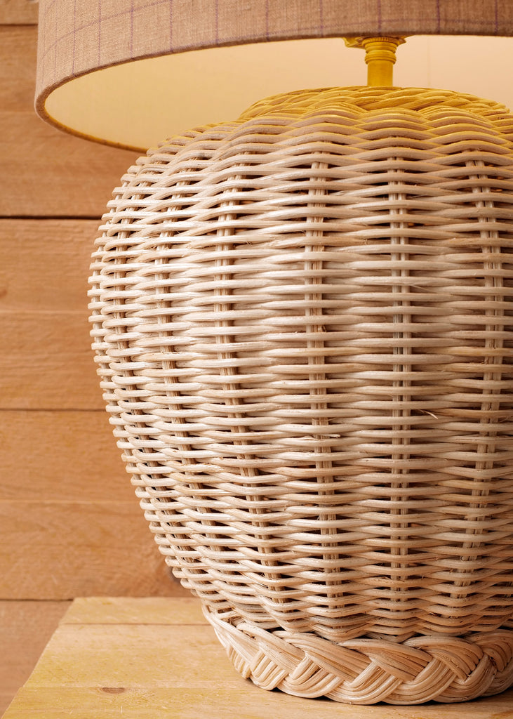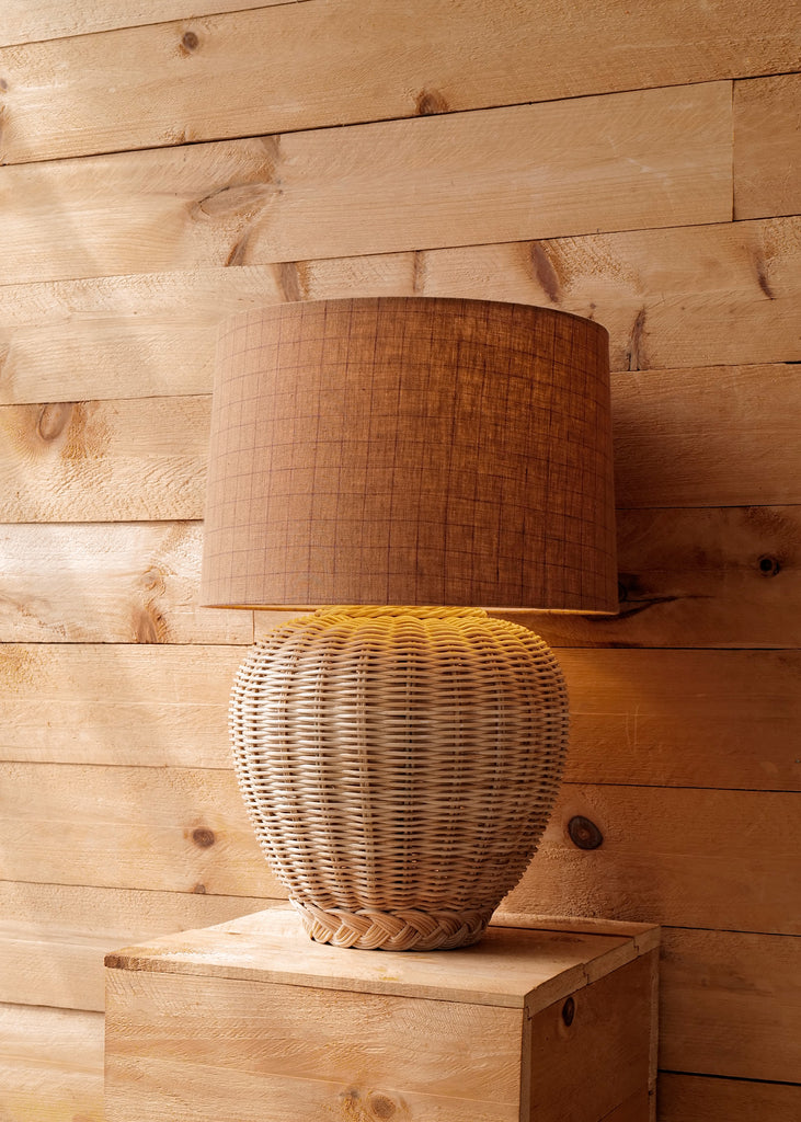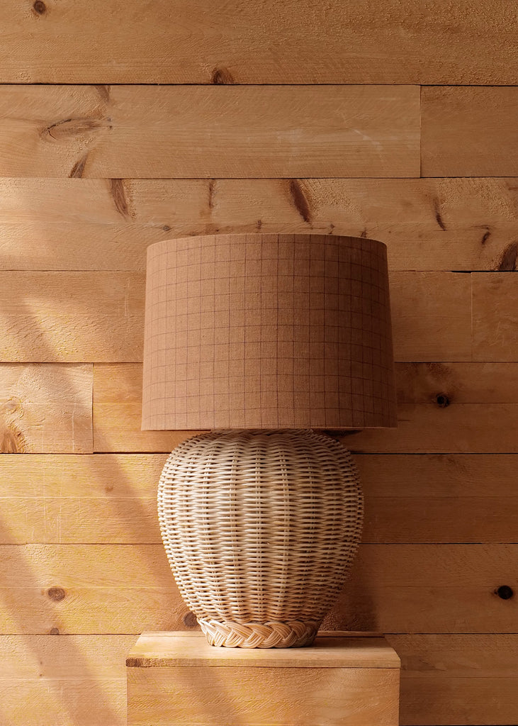 Designed by Slow Roads, the Rattan Bottle Lamp draws from antique wickerwork and European garden trellis forms. Each base is crafted from natural rattan, handwoven into a bottle-shaped silhouette. The lamp is paired with a custom shade made from yarn-dyed linen, produced in small batches by artisanal mills in Eastern Europe, a region recognized for its longstanding linen weaving traditions. In yarn-dyed textiles, the fibers are dyed prior to weaving, resulting in distinctive variations in color and texture.