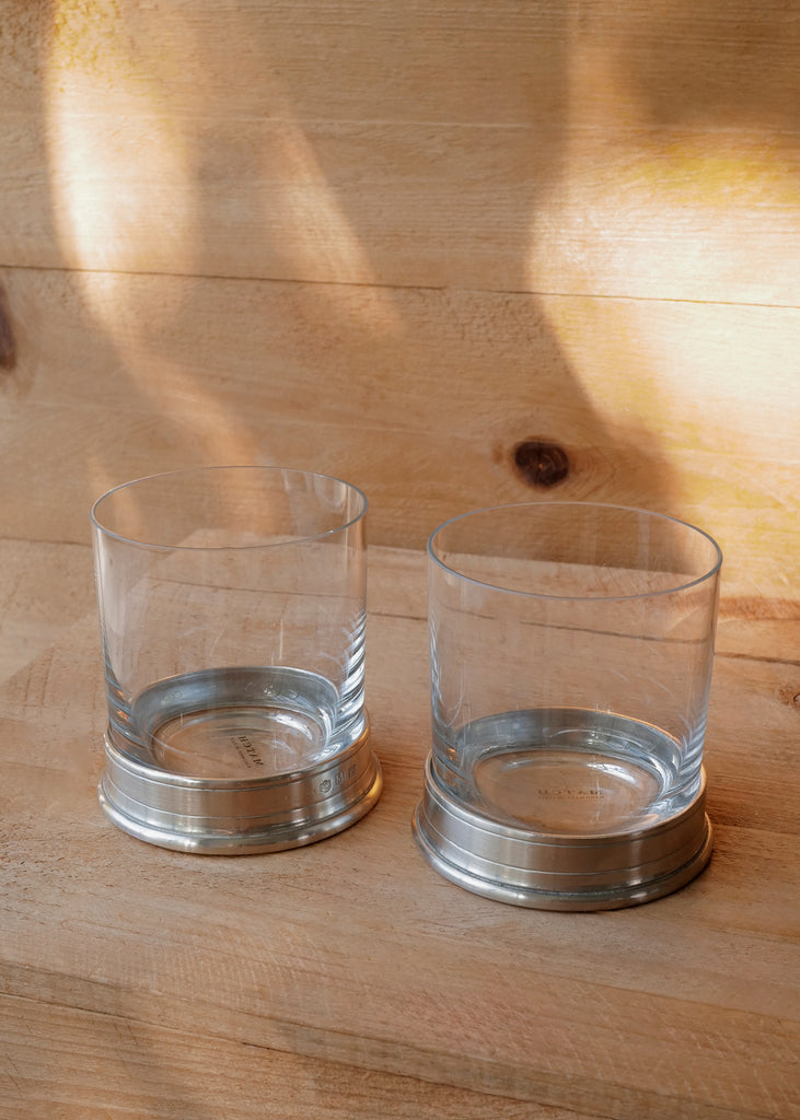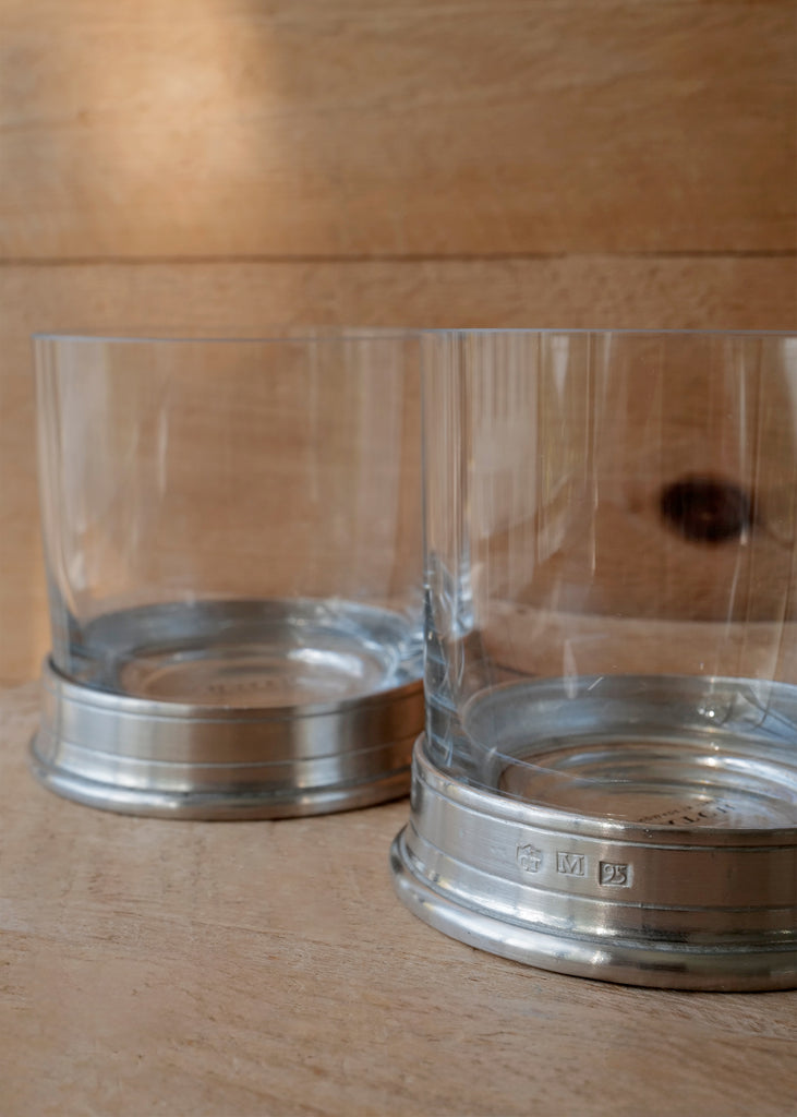 Italian Pewter Double Old Fashioned Glasses, Set of 2