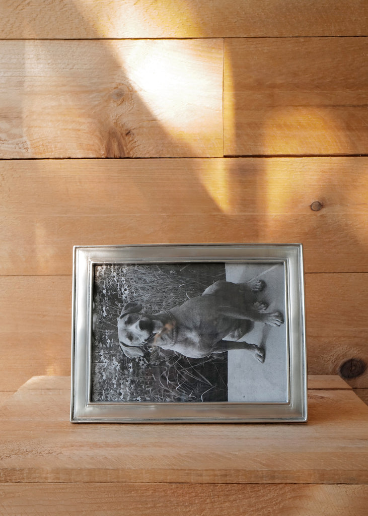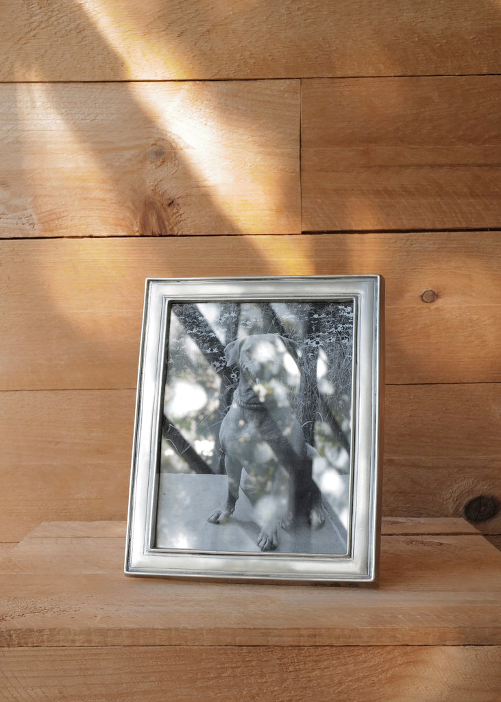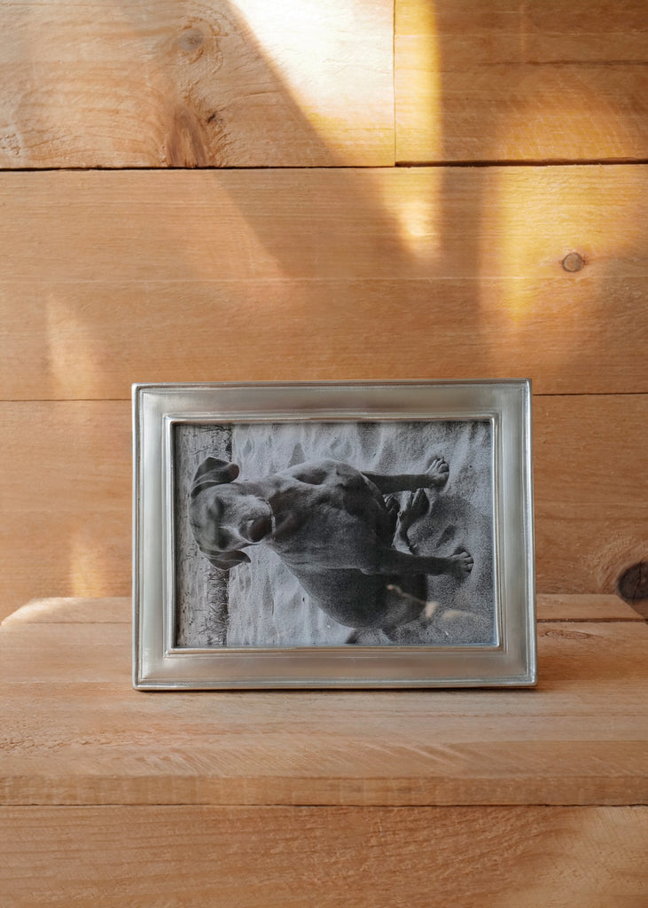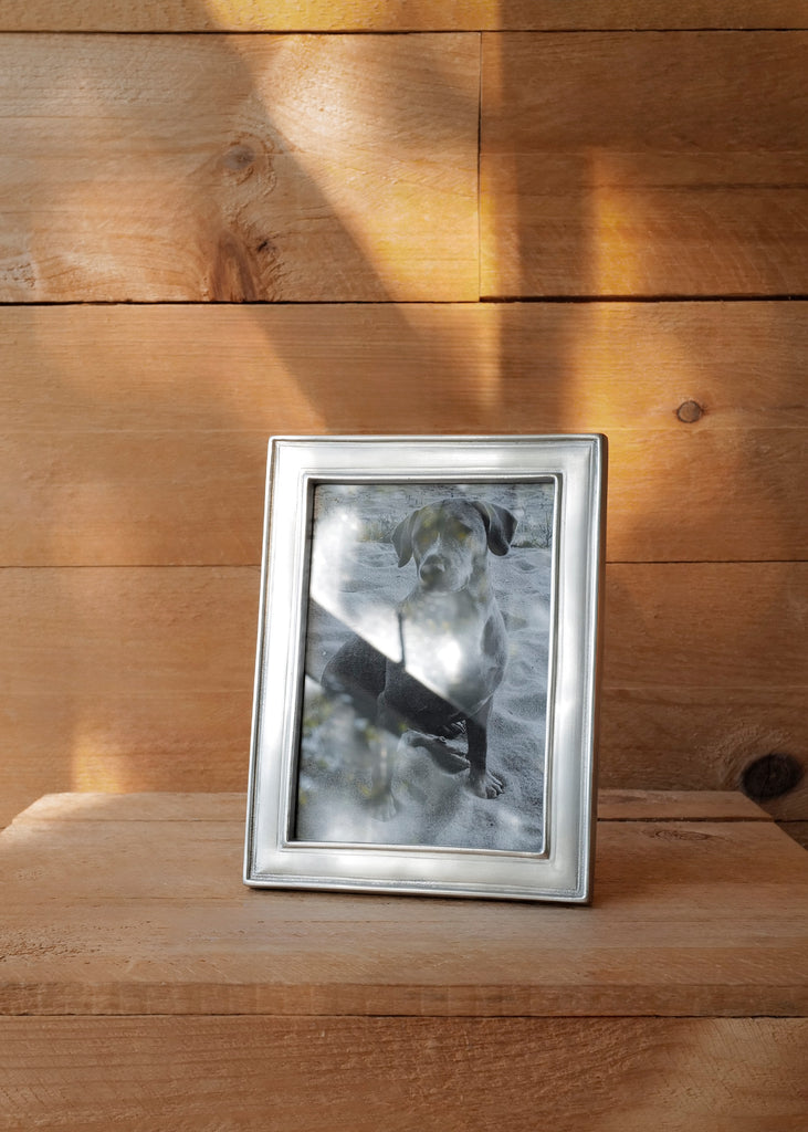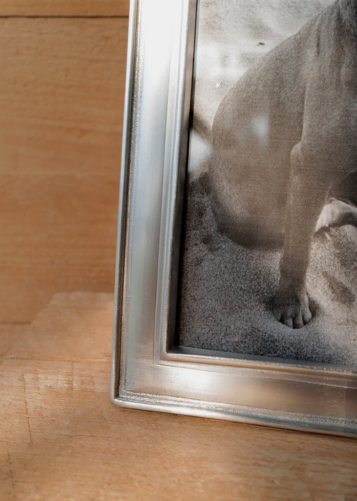 Rectangular pewter frames with subtle detailing that creates the appearance of depth within a thin profile. Available in two sizes, each frame features a wood backing and makes for an excellent gift.