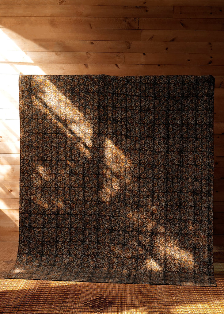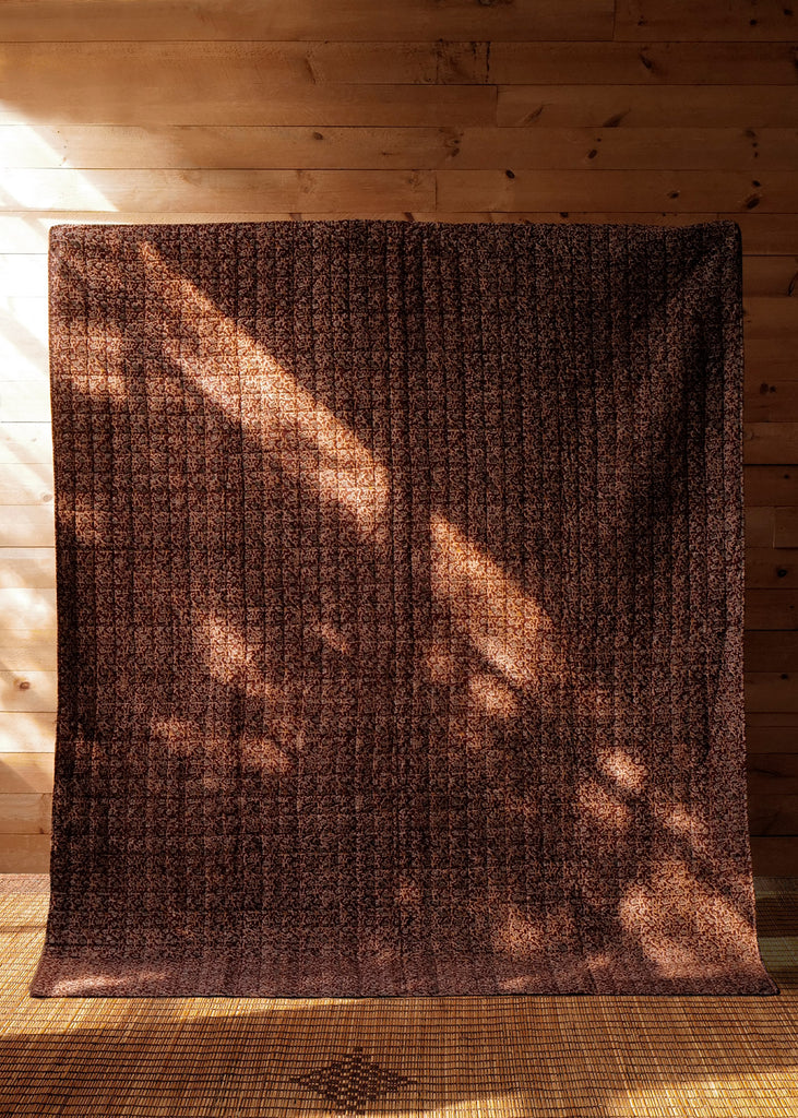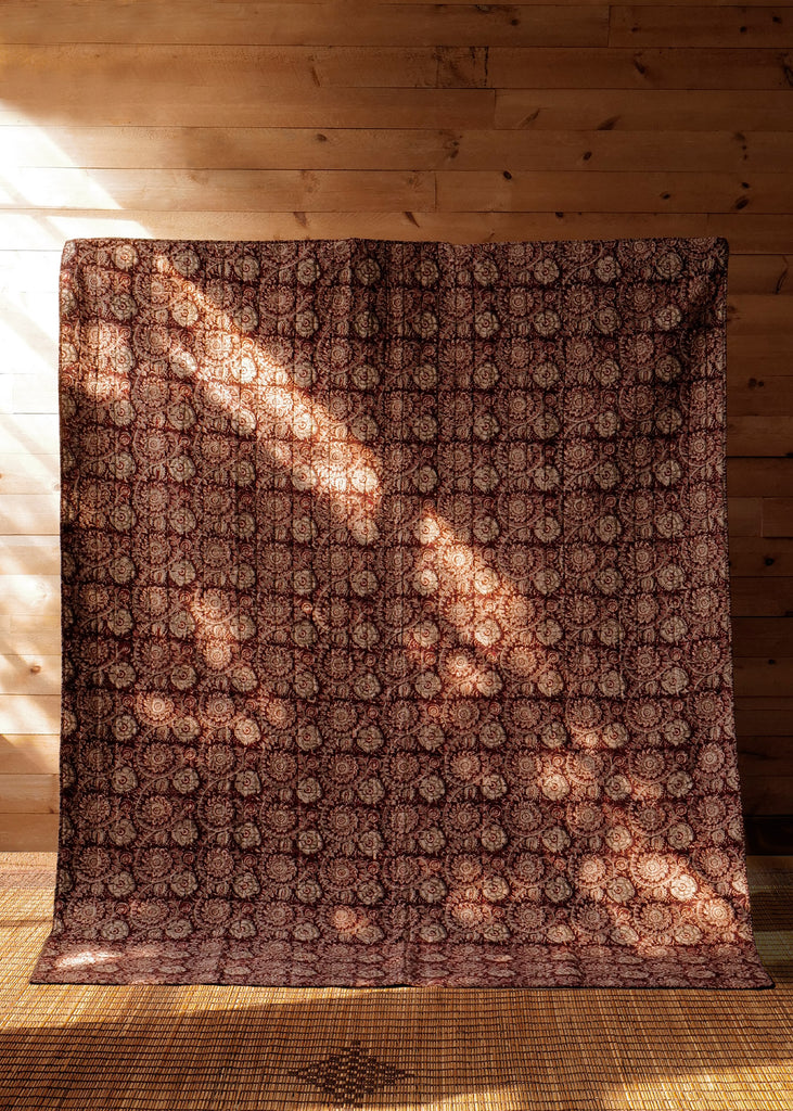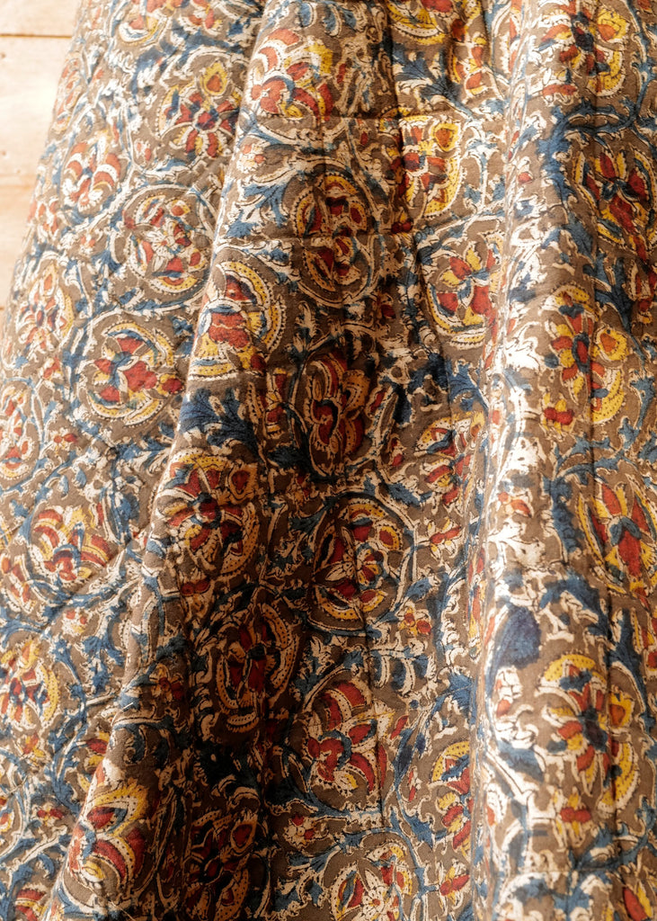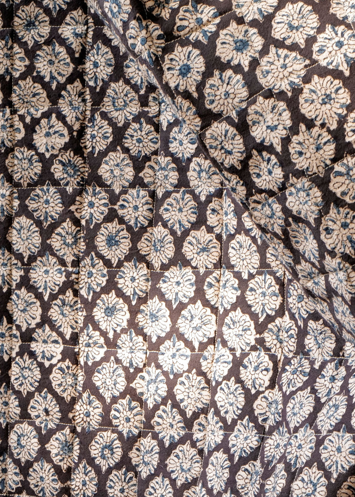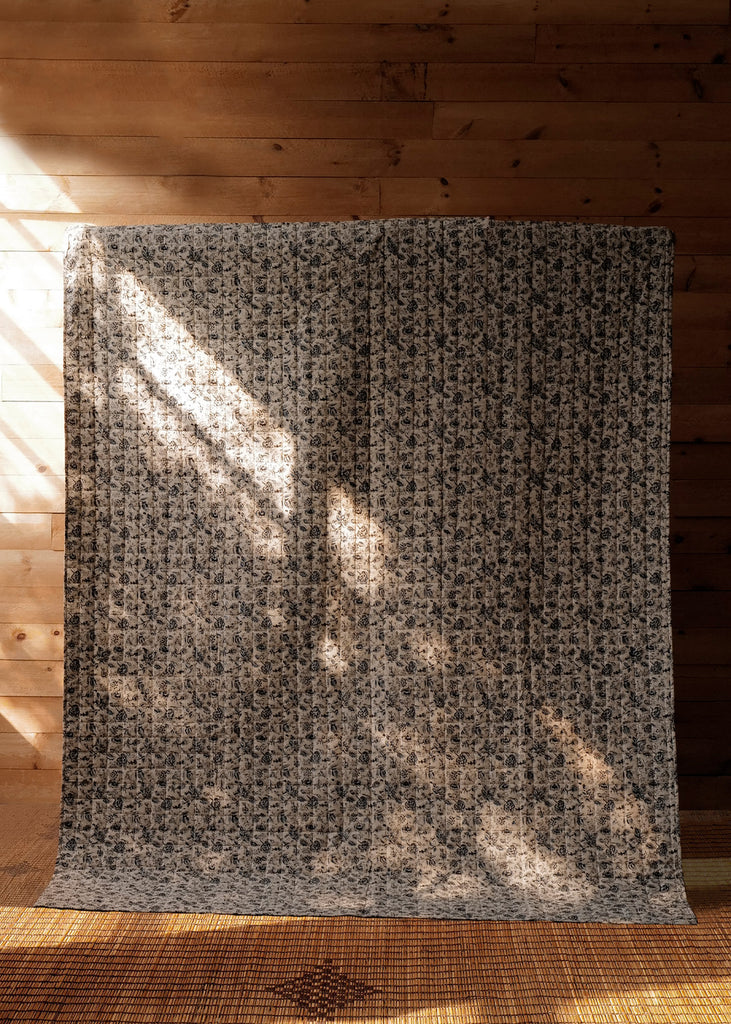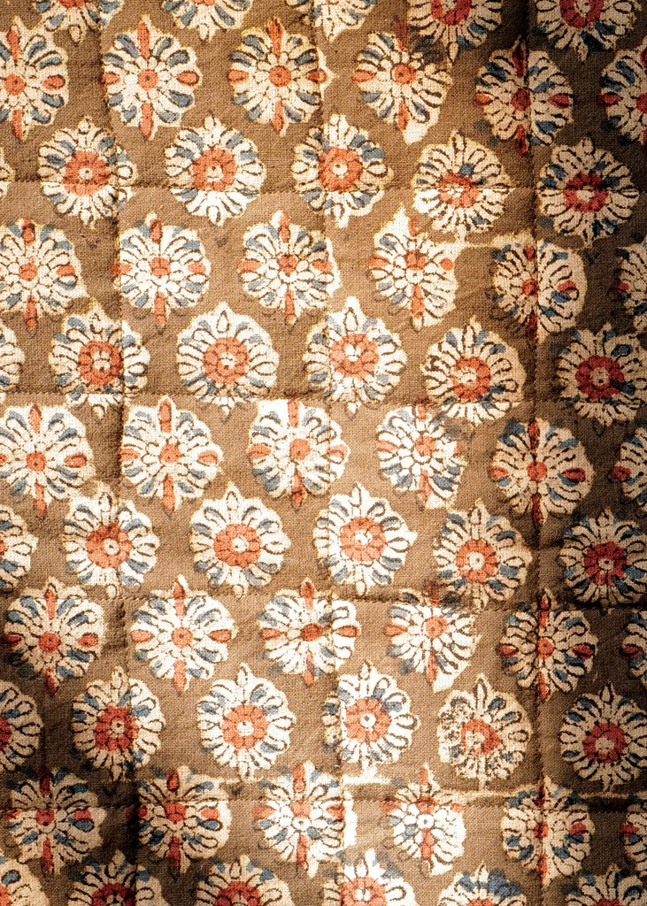 These patterned quilts are made from natural dyes on 100% hand-loomed cotton giving them an earthy, natural look. Each quilt features a repeated floral or whimsical motif on the front and back, created using traditional Indian wood-block printing techniques.