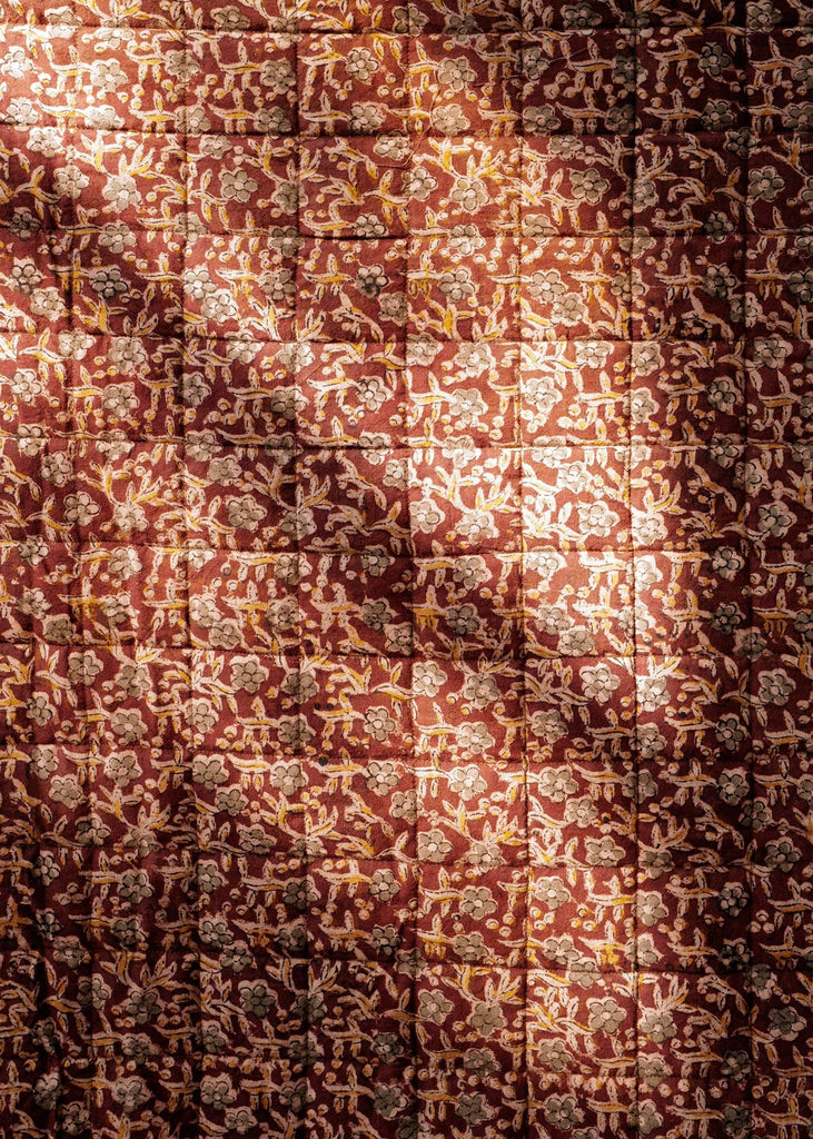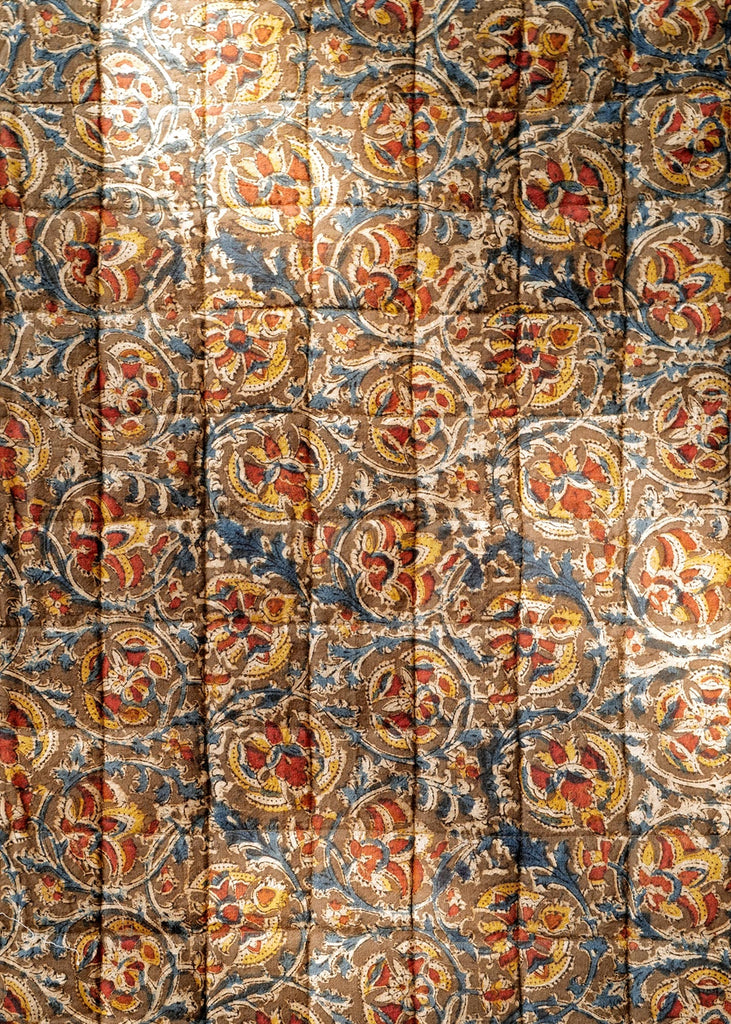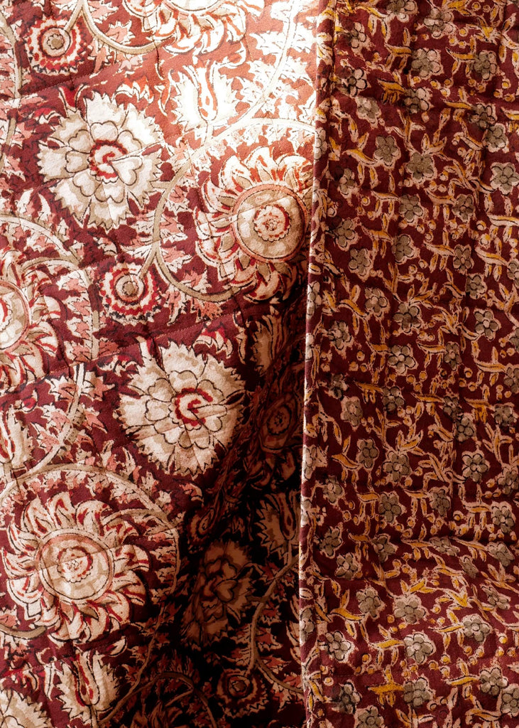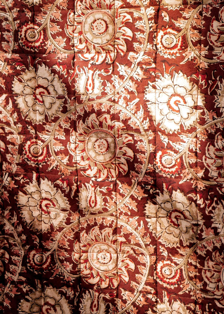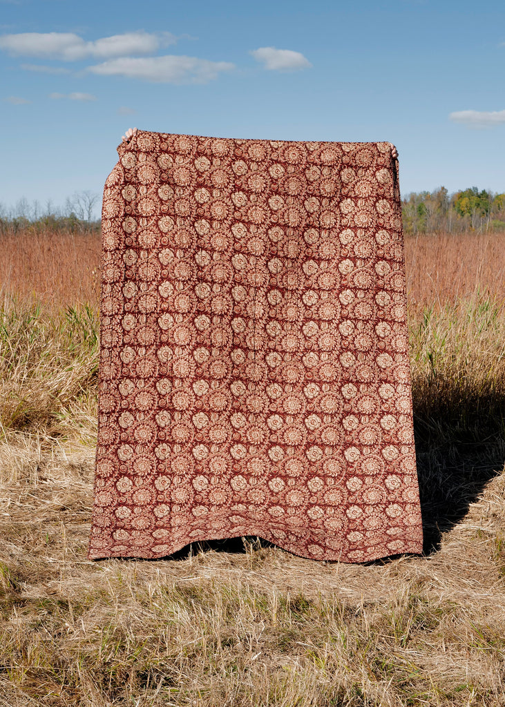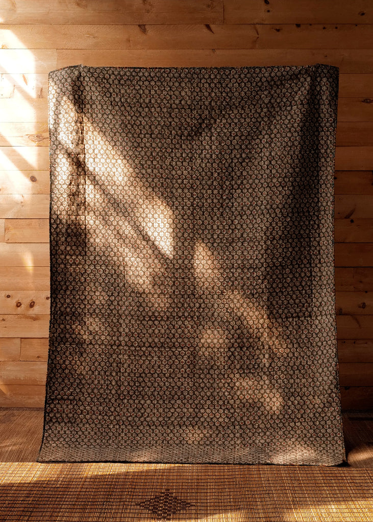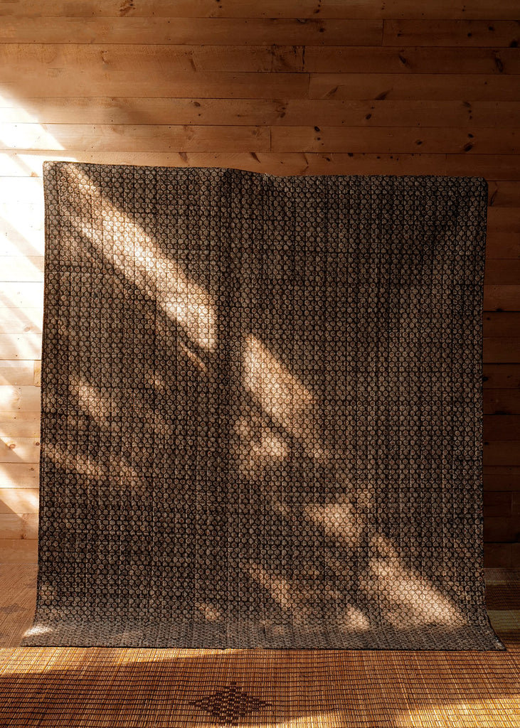 These patterned quilts are made from natural dyes on 100% hand-loomed cotton giving them an earthy, natural look. Each quilt features a repeated floral or whimsical motif on the front and back, created using traditional Indian wood-block printing techniques.