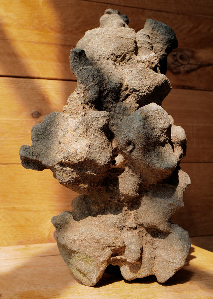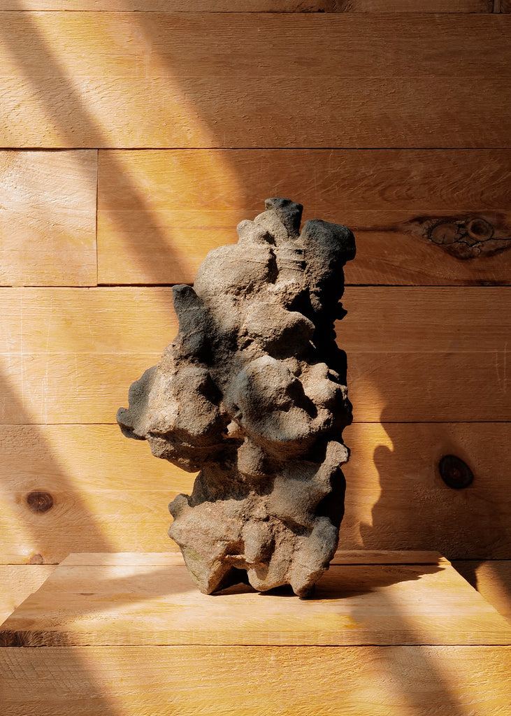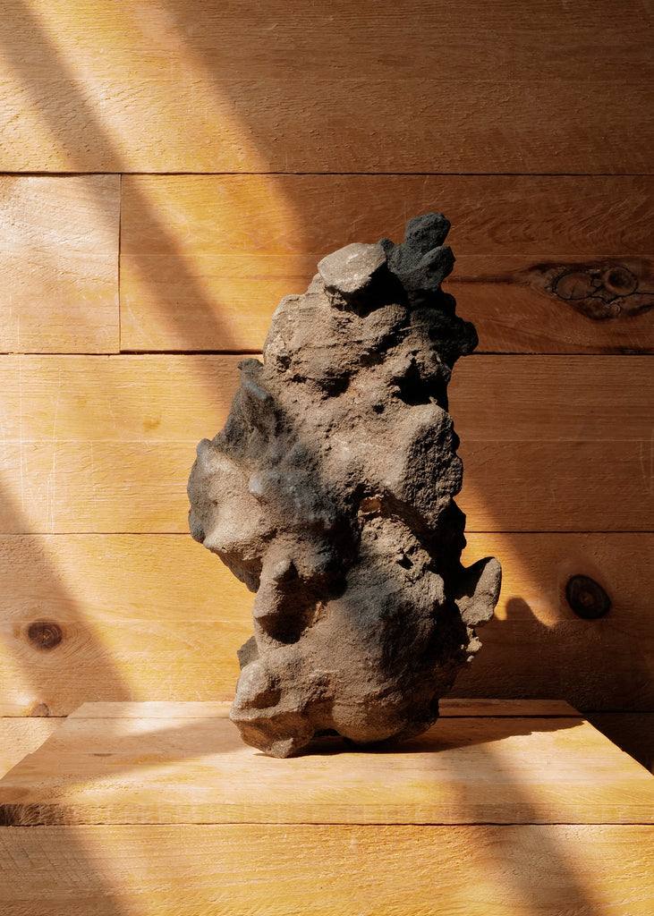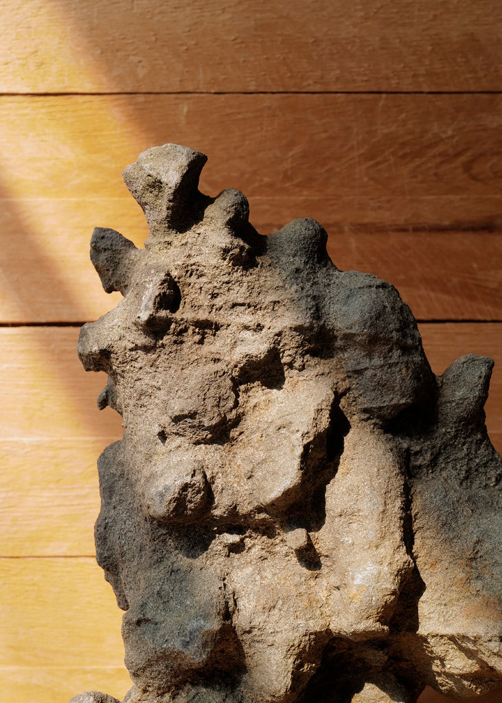 Vintage sculpture handcrafted from a natural Japanese water stone called Suiseki. The stones often represent mountains, waterfalls and other natural scenes. The piece retains the organic textures and irregularities of the material, with earthy grey and slate tones throughout. Fully three-dimensional, the sculpture presents a unique form visible from every angle. One of a kind.