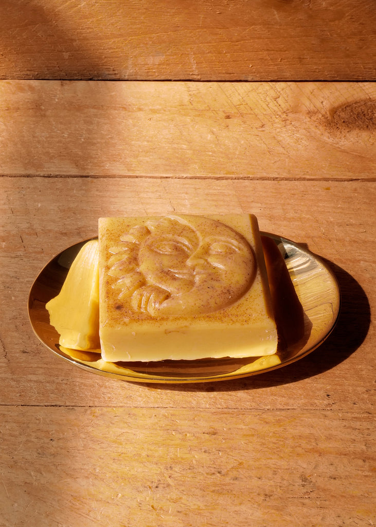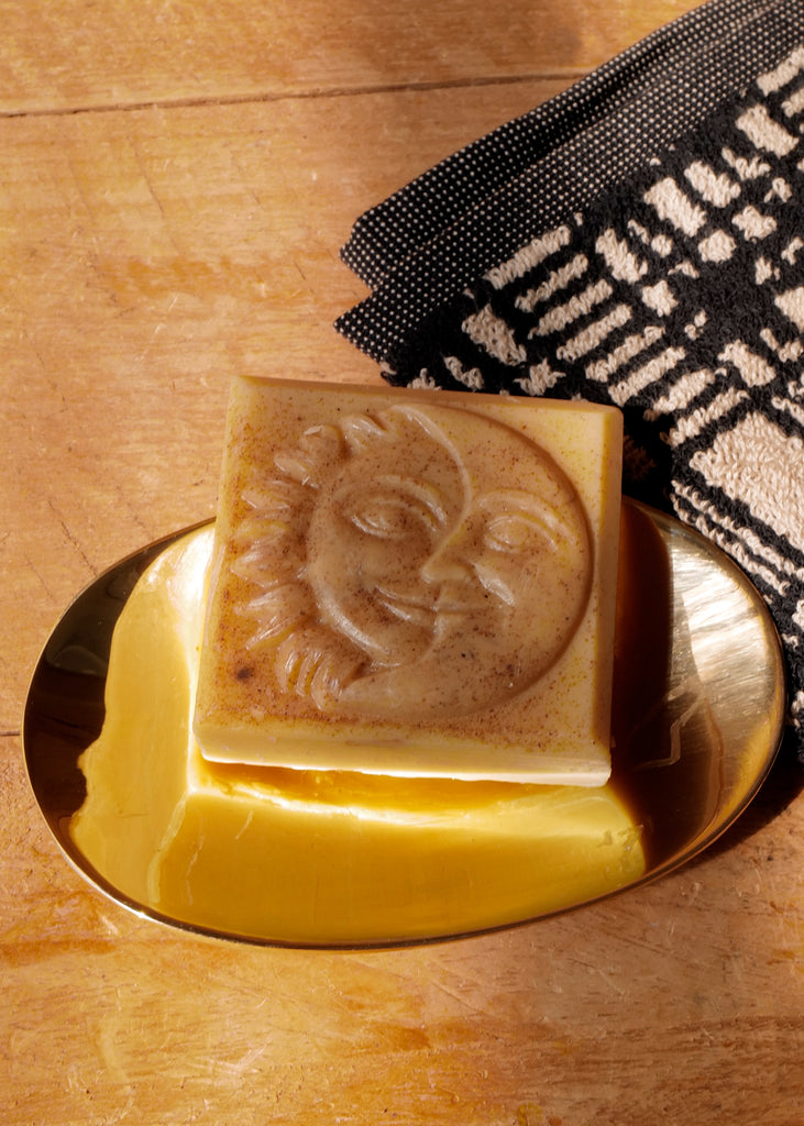 A studio favorite for good reason, this rich, plant-based bar is as beautiful as it is nourishing. Made with skin-softening ingredients like turmeric, sandalwood, saffron, shea butter, and glycerin, it lathers into a creamy wash that leaves skin feeling smooth and refreshed. Finished with a sun and moon design, it’s a small everyday luxury worth savoring.
