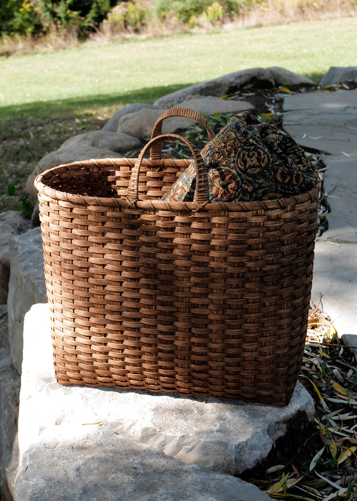 Designed and Hand-crafted by Erin and Peggy Pollard. 100% Rattan. The Smoked baskets are naturally smoked in a traditional process, causing tones to vary. Due to the free-hand-woven nature of this item, each piece is bespoke, and the shape and size, and color may vary slightly.