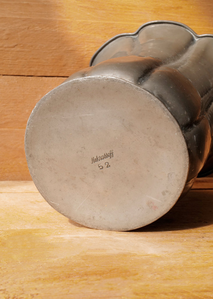 Vintage vase crafted from tarnished pewter. Stamped “Nekrassoff 52” on the base. One of a kind.