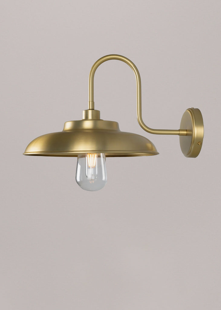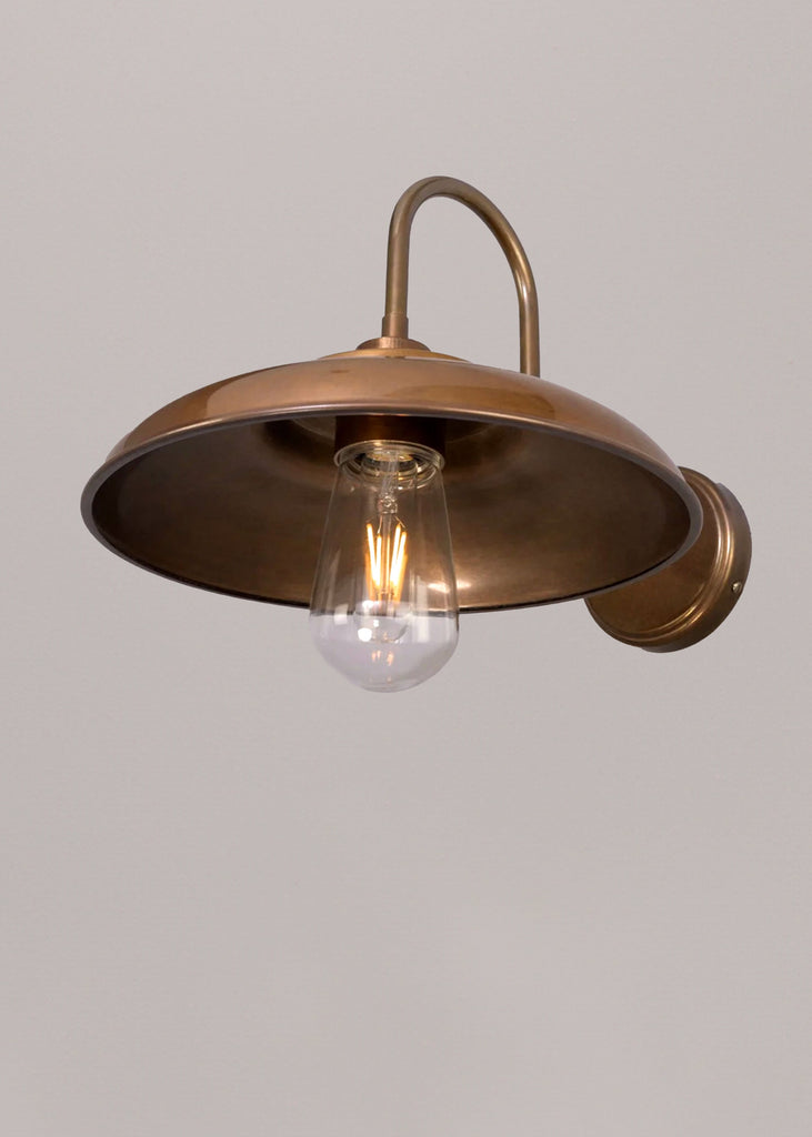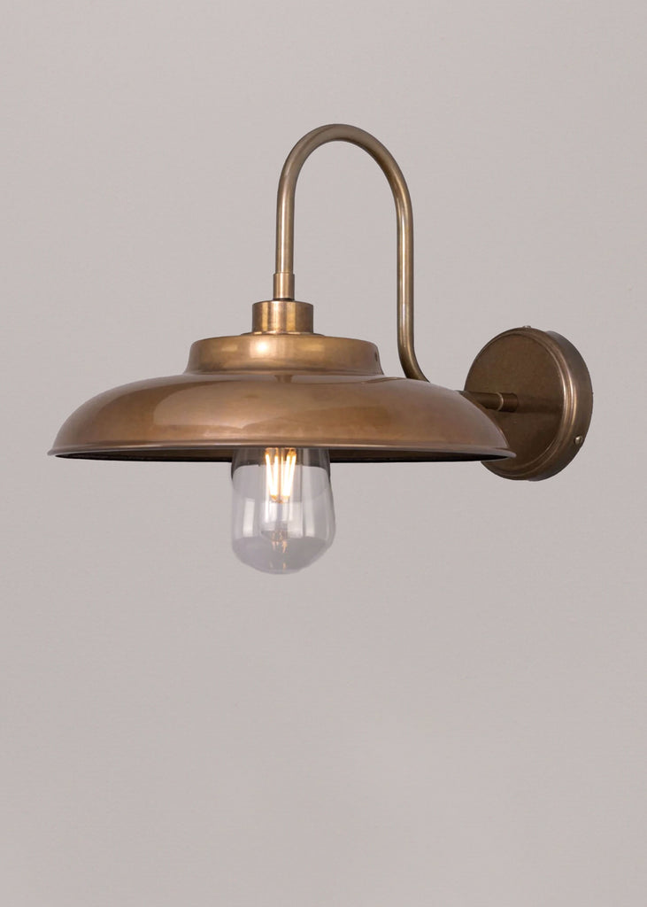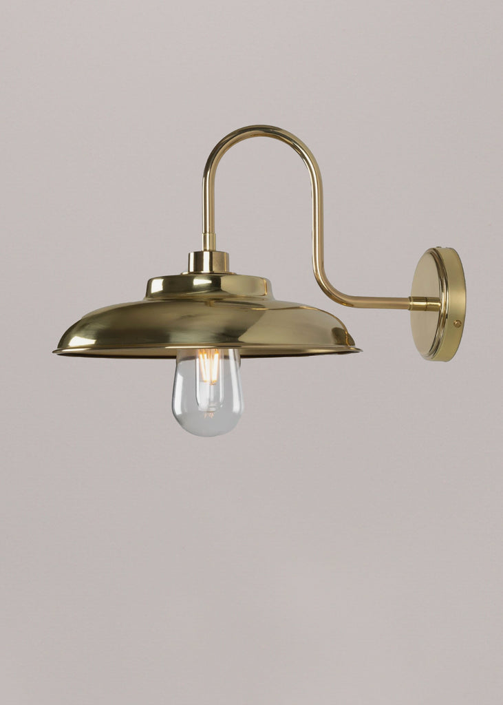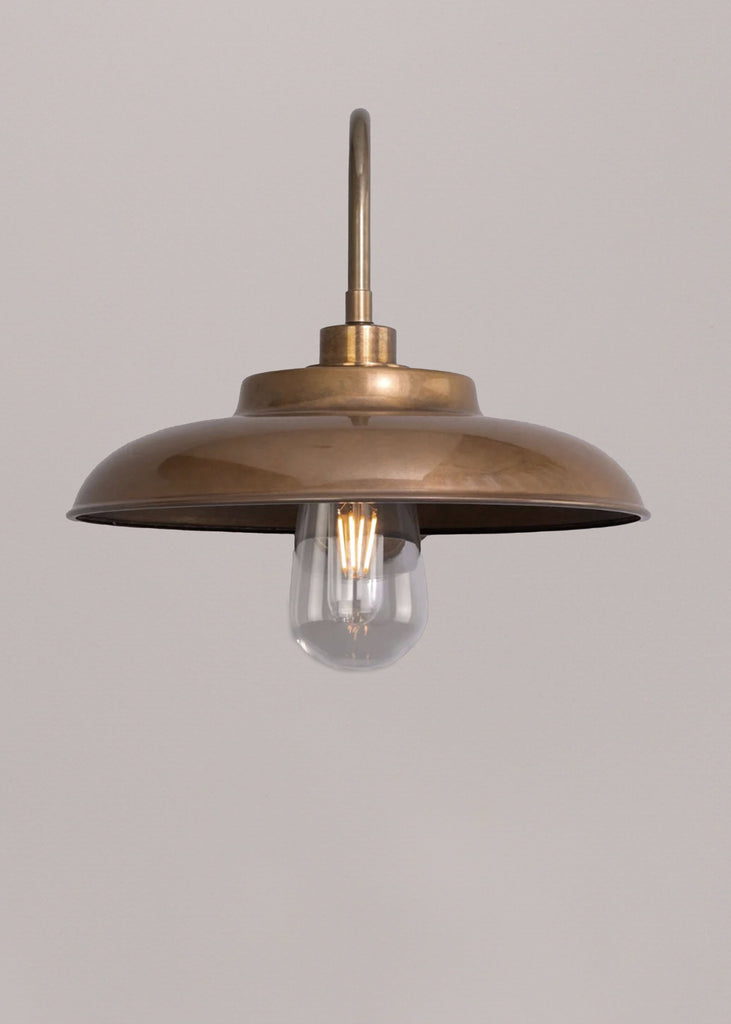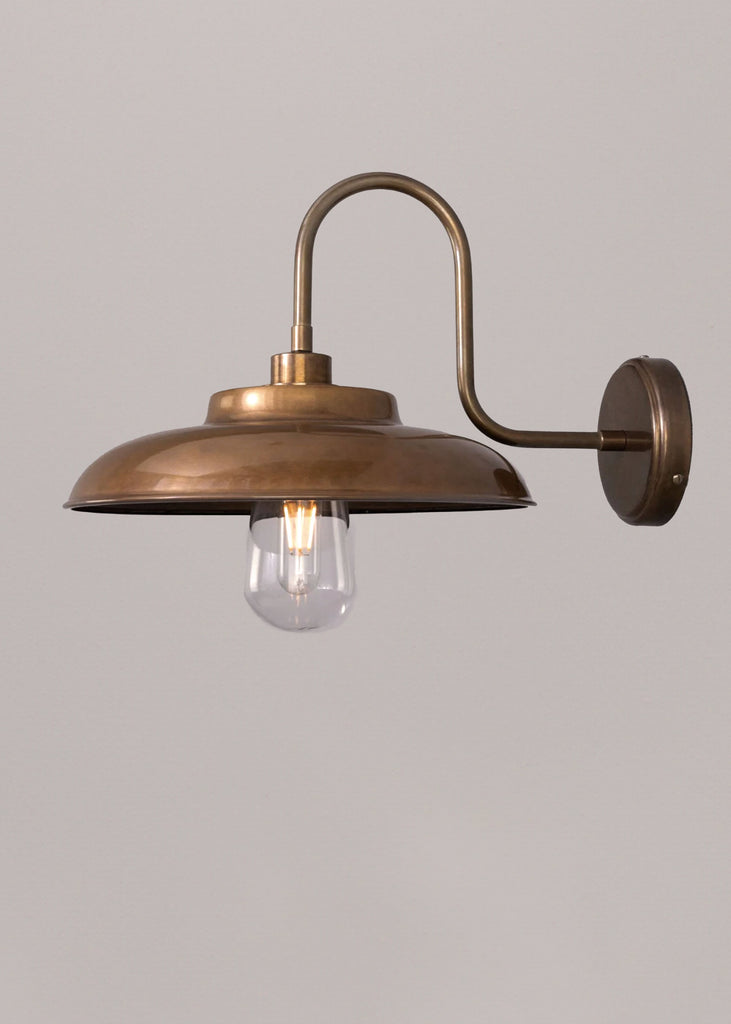 Handcrafted in Ireland, the Beacon Gooseneck Wall Sconce is made from solid brass, a material chosen for its enduring quality and timeless appeal.
