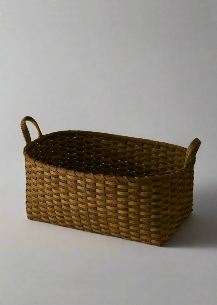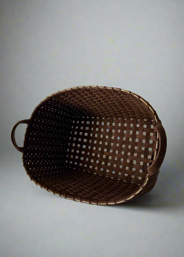 Designed and Hand-crafted by Erin and Peggy Pollard. 100% Rattan. The Smoked baskets are naturally smoked in a traditional process, causing tones to vary. Due to the free-hand-woven nature of this item, each piece is bespoke, and the shape and size, and color may vary slightly.