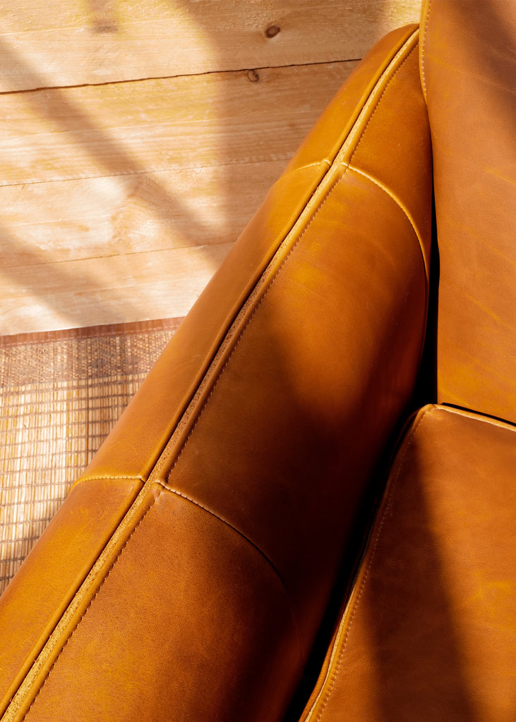 Fabric selection transforms the character of furniture. Choose from a curated range of fabrics, or personalize your piece with a Slow Roads custom design. For a timeless, eclectic pairing, try the signature mix-and-match configuration: a fabric seat with a leather body.