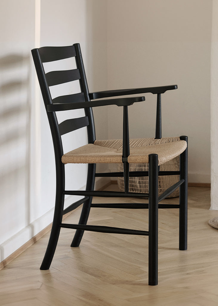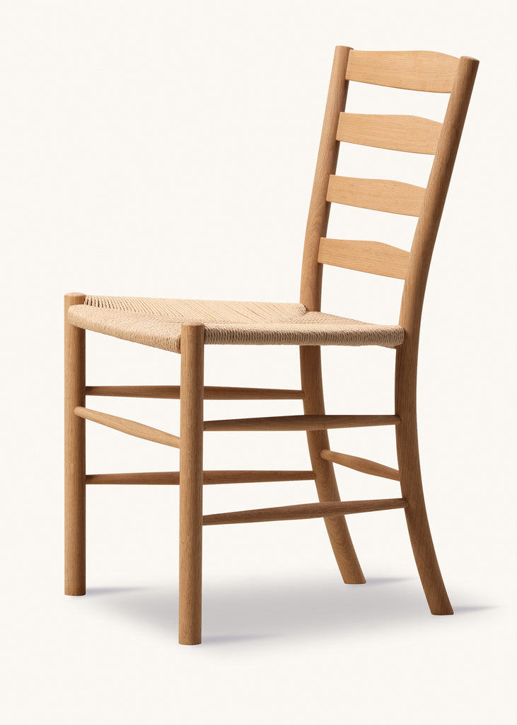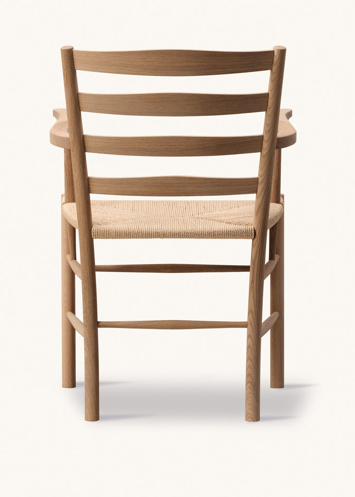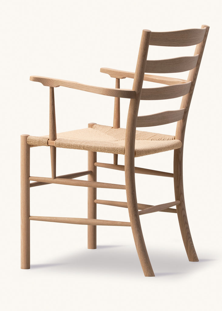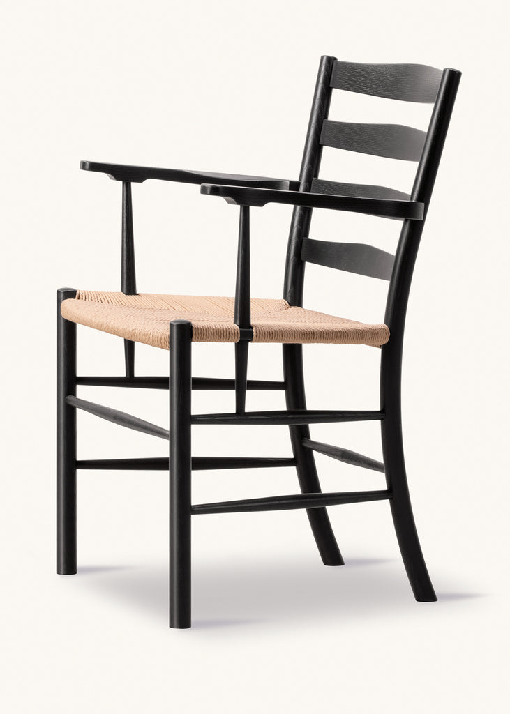 Designed in 1936 by Kaare Klint, widely regarded as the father of Danish design, the Klint Chair and Klint Armchair update a traditional English Country Chair with a sculpted wood frame, high back, and woven papercord seat. Both pieces reflect Klint's mission to modernize classic forms through proportion and craftsmanship.