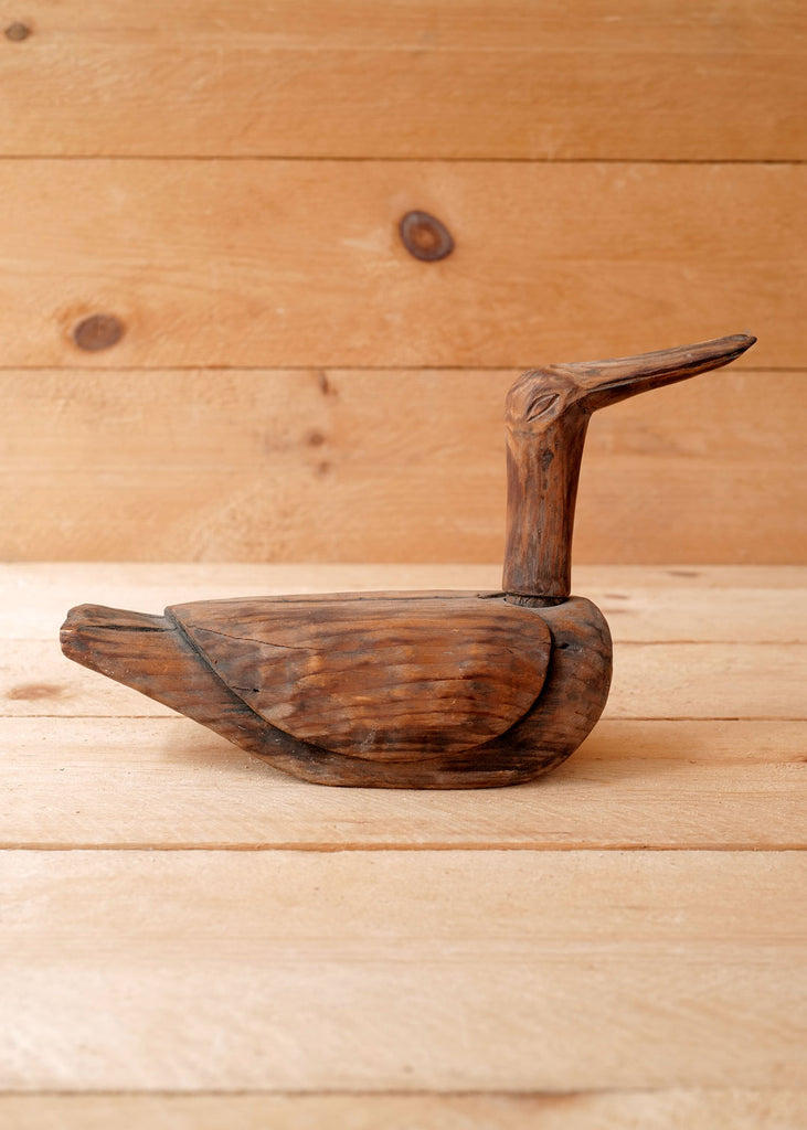 The Vintage Hand Carved Wooden Bird adds character to any shelf or tabletop. With its hand carved features and aged wood finish, this one-of-a-kind artifact evokes the natural environment.